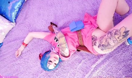 Девушка с голубыми волосами и тату решила после анальной игрушки впустить в дырку член