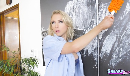 Дама Аликс Линкс тискает зачетные груди и мастурбирует шмоньку между ног в желании секса. Подрочив, она практически в неглиже спешит мыть оконные стекла и своей красотой привлекает внимание проходящего мимо мужика, который явно не прочь засунуть киске по самые помидоры, когда заходит в гости и говорит ей об этом. Так что зря крошка мастурбировала – гость так отодрал леди, что этого ей хватит до следующего визита любовника.